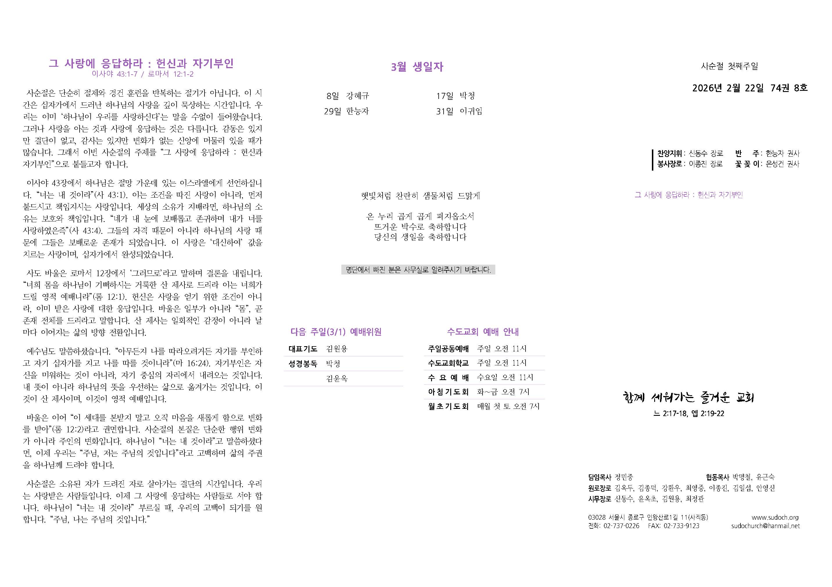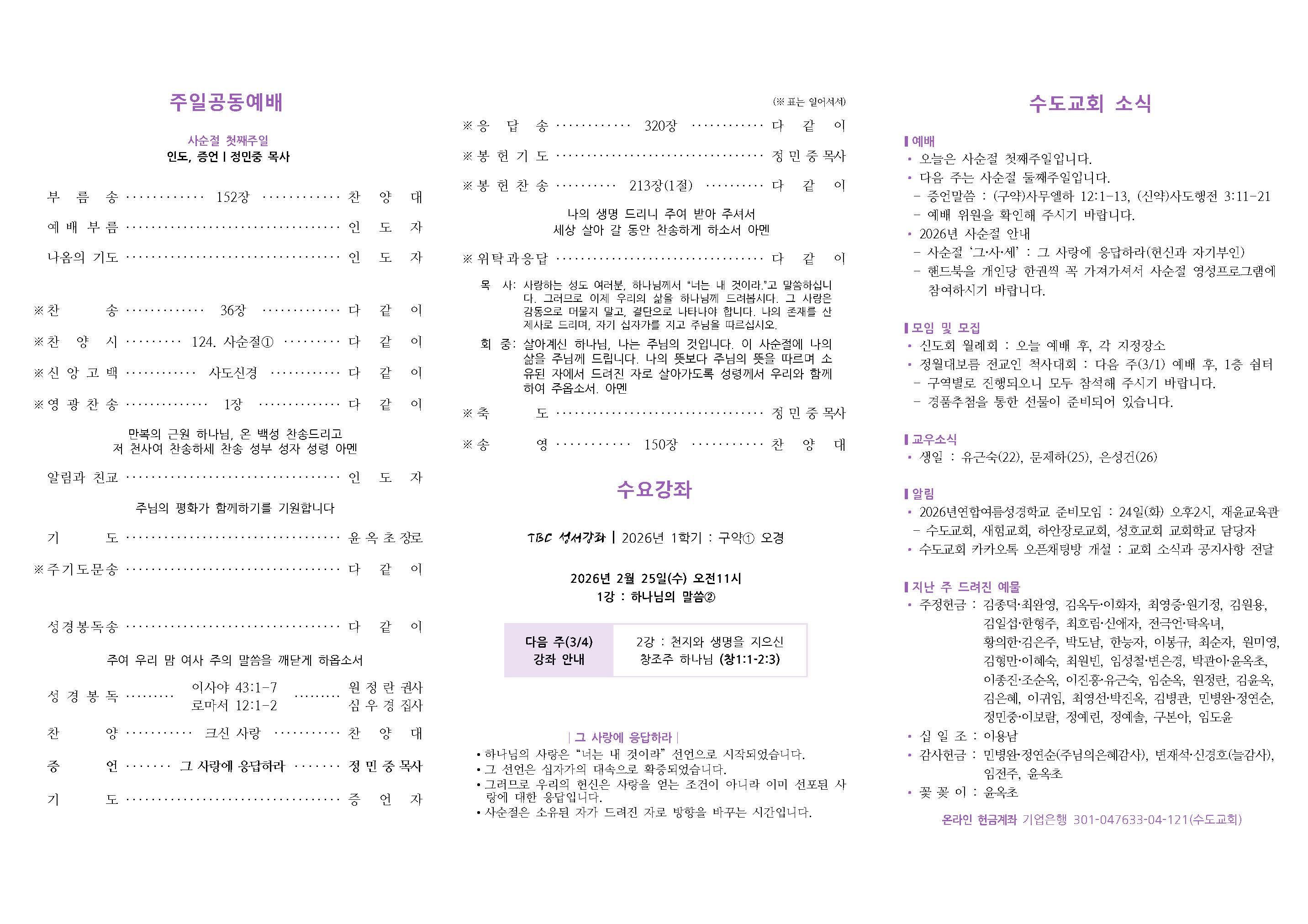 2026년 3월 1일_사순절 둘째주일(3.1절 기념주일)