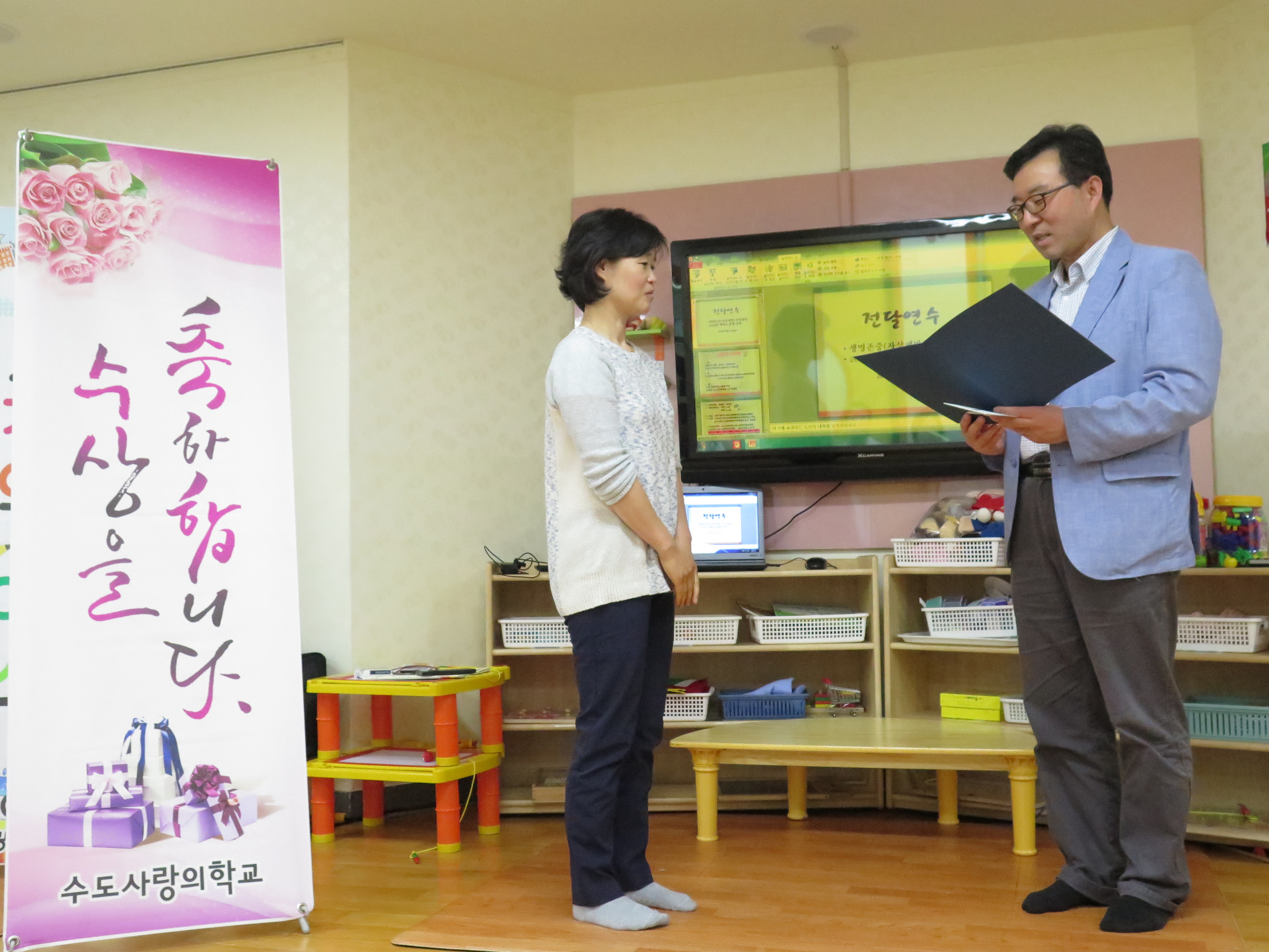 박영희 선생님과 임병임 선생님이 공로상(수도교회 당회장상)을 수상하였습니다.