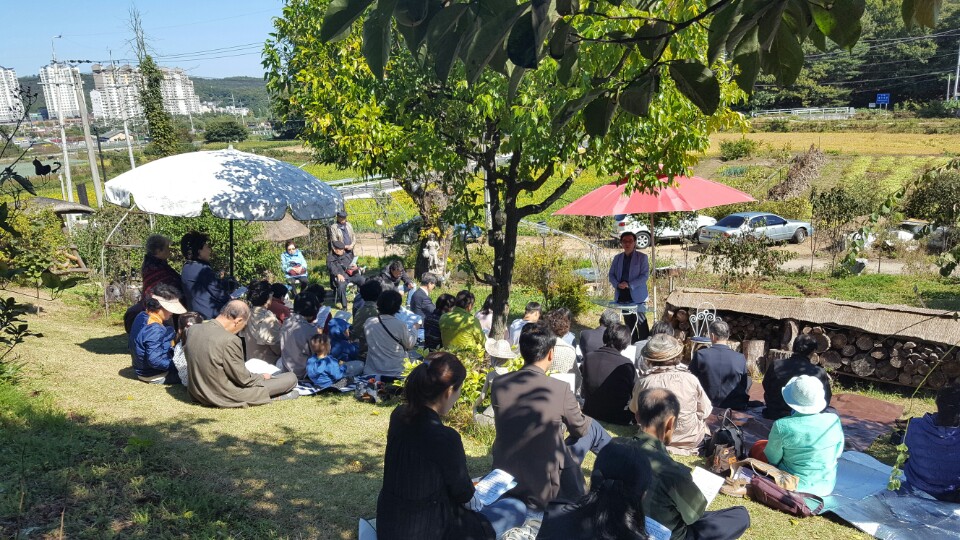 전교인야외예배를 이종림 최영주 권사 댁 허브농장에서 드렸습니다.